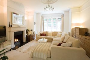 - Consider using large tiles to create a uniform and seamless appearance in a large living room.